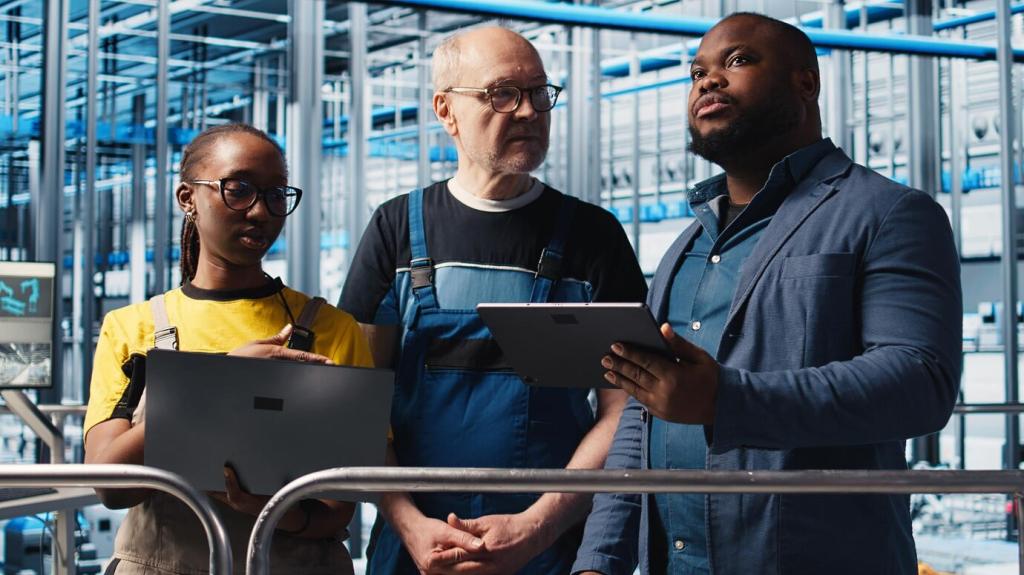Straßenknoten aggregieren Sensordaten, entlasten das Fahrzeug und beschleunigen Warnungen. KI-Module am Rand erkennen Gefahren und koordinieren Ströme. Interessiert? Abonniere Einblicke zu Latenzen, Bandbreiten und Ausfallsicherheit.